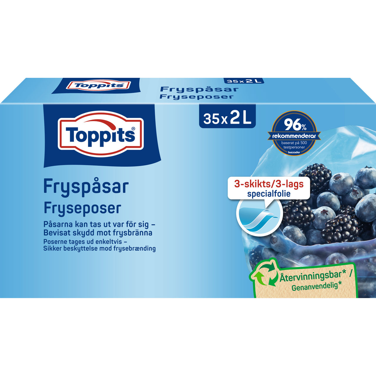 Bästa sättet att undvika frysbränna: fryspåsar med stadig botten som är lätta att fylla, har lufttät förslutning och en tydlig märkning. Frysning med Toppits® – enkelt och säkert!